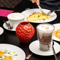 Unser reichhaltiges und buntes Frühstücksbuffet besteht aus regionalen Produkten von Klein- und Familienbetrieben, Bauernhöfen und Läden aus unserer unmittelbaren Umgebung. Zwischen 7:00 Uhr und 1 1 Uhr erwartet Dich eine breite Auswahl an Teig- und Backwaren, Aufstrichen und Aufschnitten, Obst und Gemüse, Cerealien sowie Saft, Kaffee- und Teespezialitäten. Ergänzt wird das Buffet von frisch für Dich zubereiteten und auf deine individuellen Wünsche abgestimmten Eierspeisen und Buttermilchplinsen.